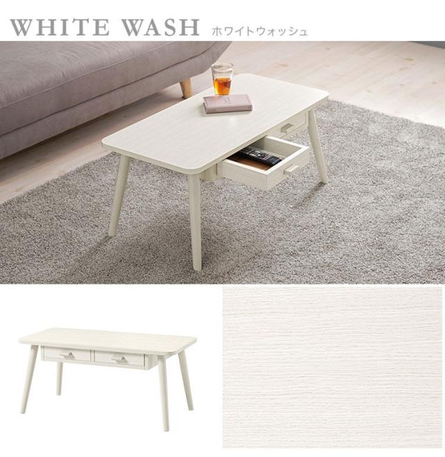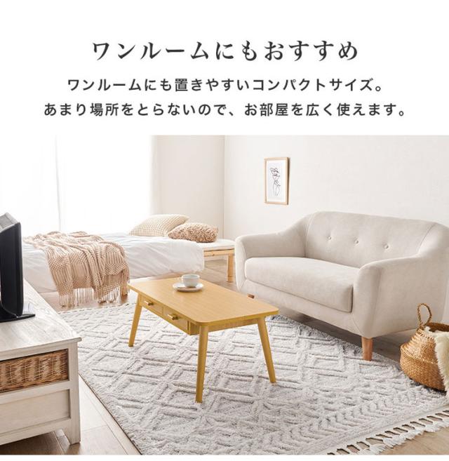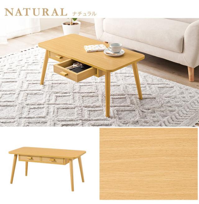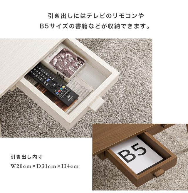 前後どちらからも収納できる両面引出付き。ワンルームにも置きやすいコンパクトサイズのセンターテーブルです。