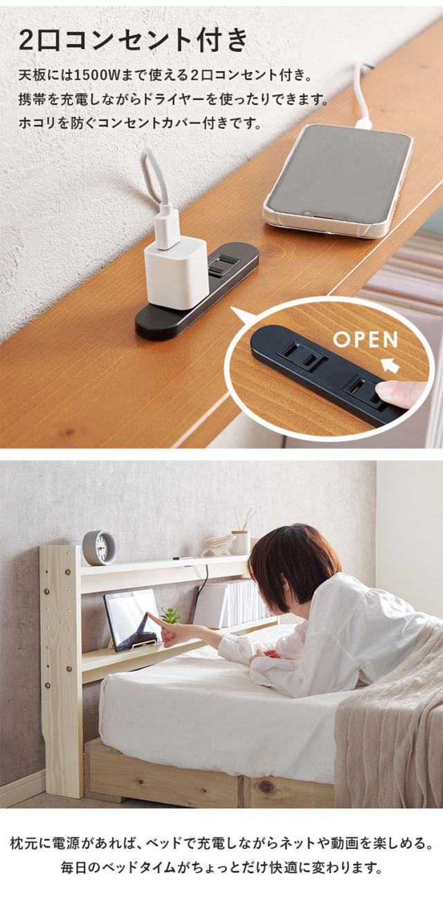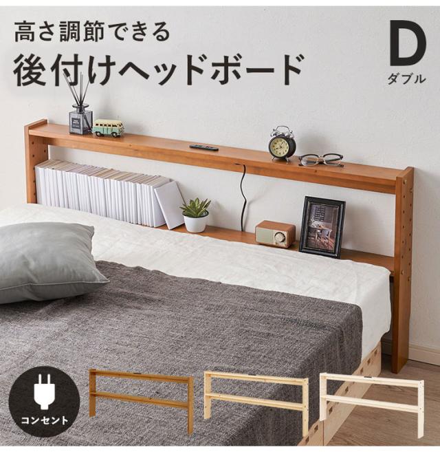 天然木 後付けヘッドボード 高さ調節式 ダブル 幅140cm コンセント付き 薄型 スリム 壁付け 可動棚式 ベッド用 ローベッド用 ヘッドボード 単品 本棚 ラック 書棚(代引不可)【送料無料】
