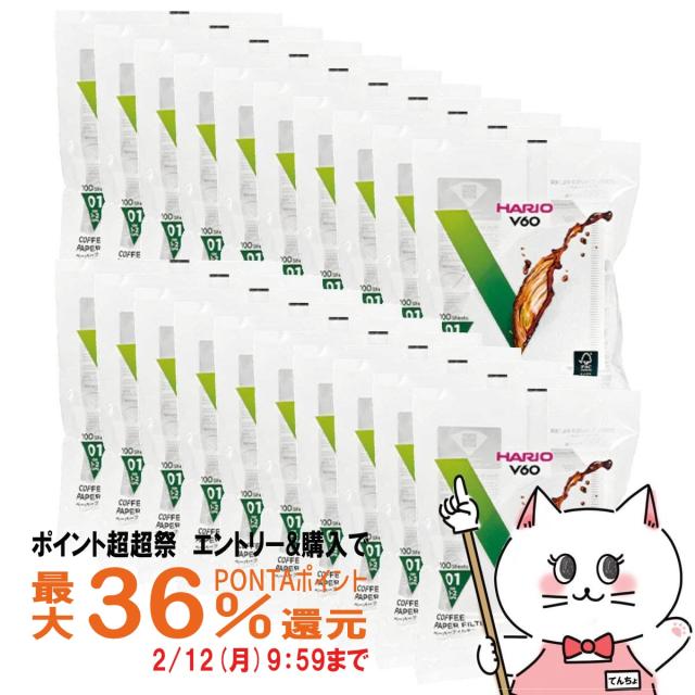 【ポイント超超祭 最大36%還元】[20個セット]HARIO VCF-01-100W V60用ペーパーフィルター酸素漂白01×20個[送料無料] (6053391-set20)