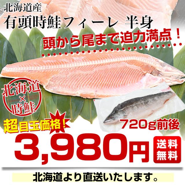 北海道より直送 北海道産 有頭時鮭フィレ 半身 720g前後 送料無料 サケ 鮭 サーモン トキシラズ 【発送時期:カート内に記載しております】