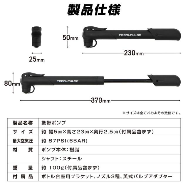 PEDALPULSE 自転車 空気入れ コンパクト 携帯 仏式 英式 米式 自転車空気入れ 携帯ポンプ