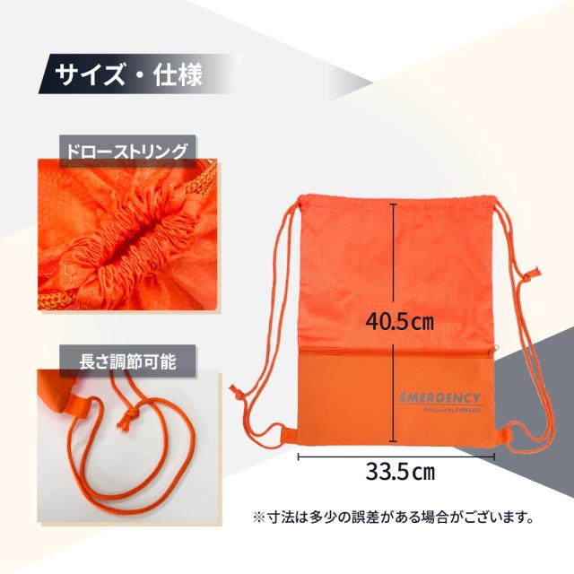 防災バッグ ナップサック 1個 リュックサック 非常時 避難 軽量 撥水加工 巾着 KS01 EVERSAFE メール便2個までOK