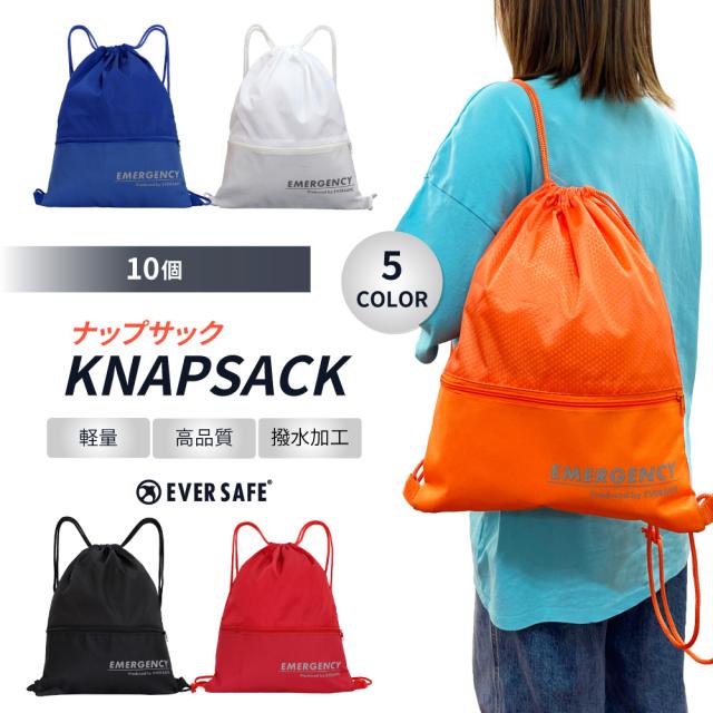 防災バッグ ナップサック 10個 リュックサック 非常時 避難 軽量 撥水加工 巾着 KS01 EVERSAFE