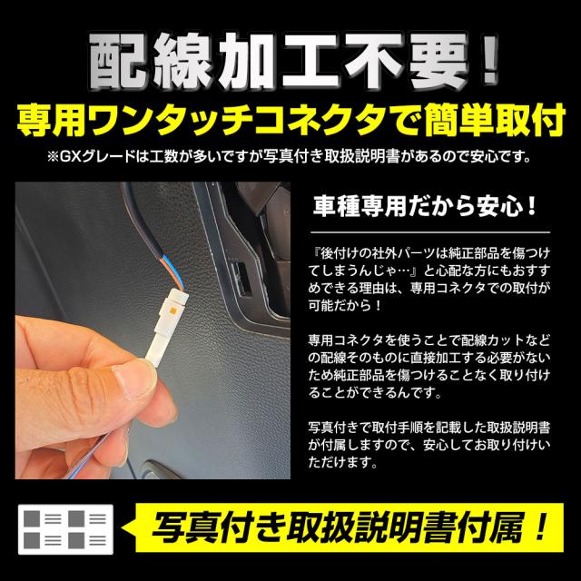 ・コネクタ付き配線 ×1 ・マイナスドライバー ×1 ・タイラップ ×4 ・配線通し ×1(GXグレードのみ付属) |