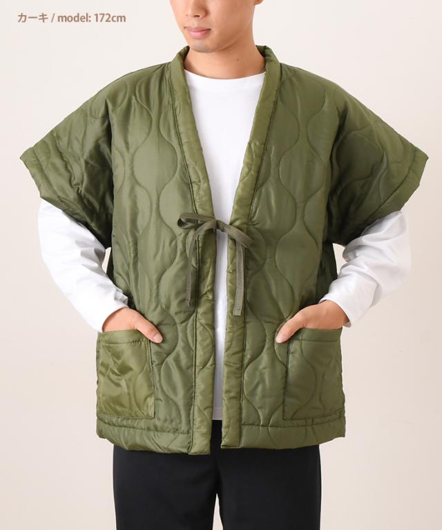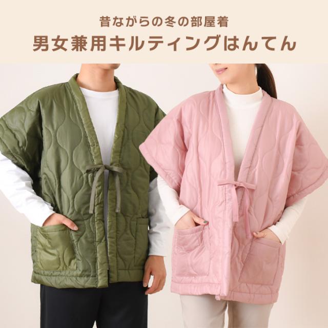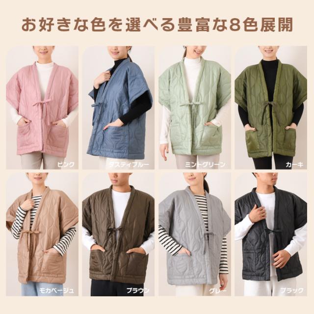 新作 選べる8色★男女兼用キルティング中綿入りやっこ型はんてん レディース メンズ あったか 暖かい 中綿 袖なし 半袖 薄手 軽量 軽い 半纏 綿入りはんてん 羽織り 部屋着 ゆったり どてら ちゃんちゃんこ