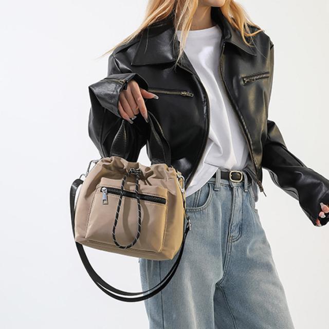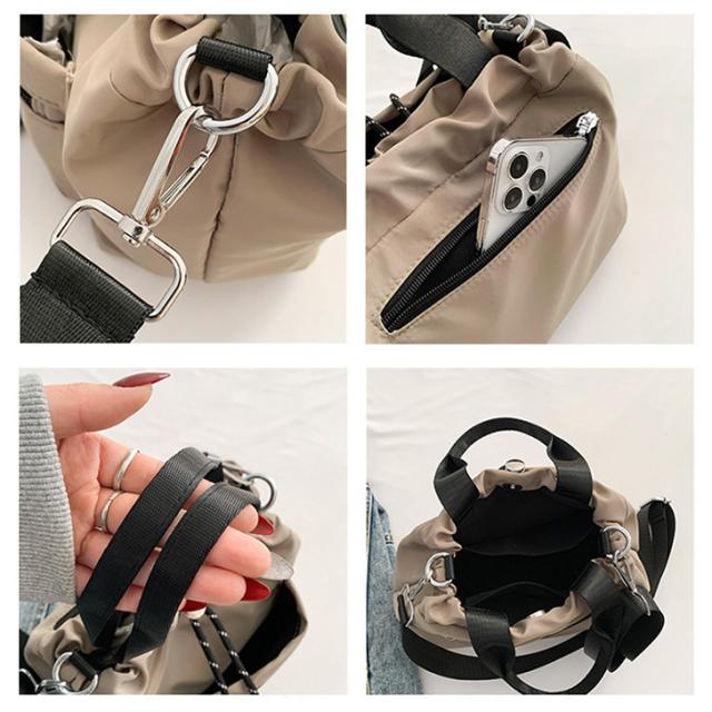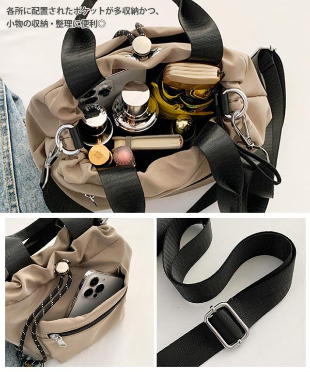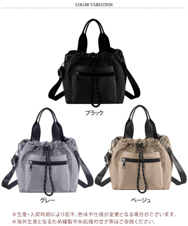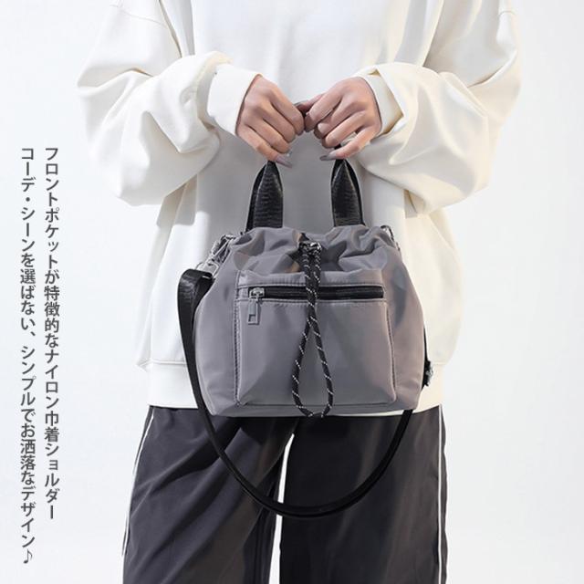 新作 フロントファスナーポケット 2way 撥水 ナイロン 巾着 ショルダーバッグ レディース 巾着バッグ ハンドバッグ トートバッグ 斜めがけ 収納 マチ広 大人 おしゃれ かわいい カジュアル 軽量 小さめ ミニ