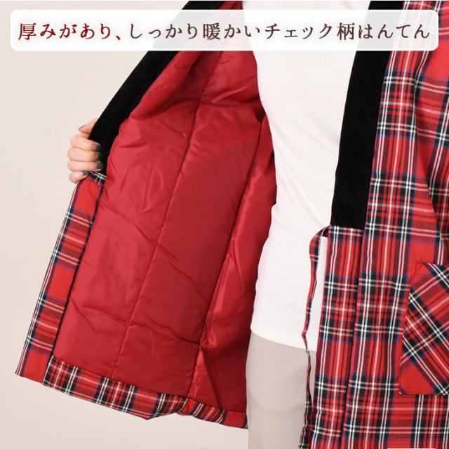 新作 裏タフタ中わた入り綿混チェック柄はんてん レディース あったか 暖かい 極暖 おしゃれ 中綿 長袖 半纏 綿入りはんてん 冬 羽織り ルームウェア 部屋着 ゆったり どてら ちゃんちゃんこ ポケット 重ね着