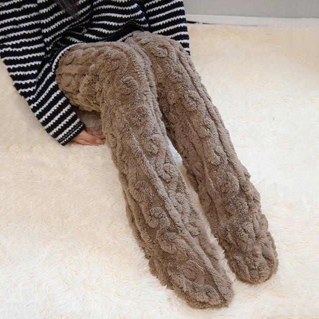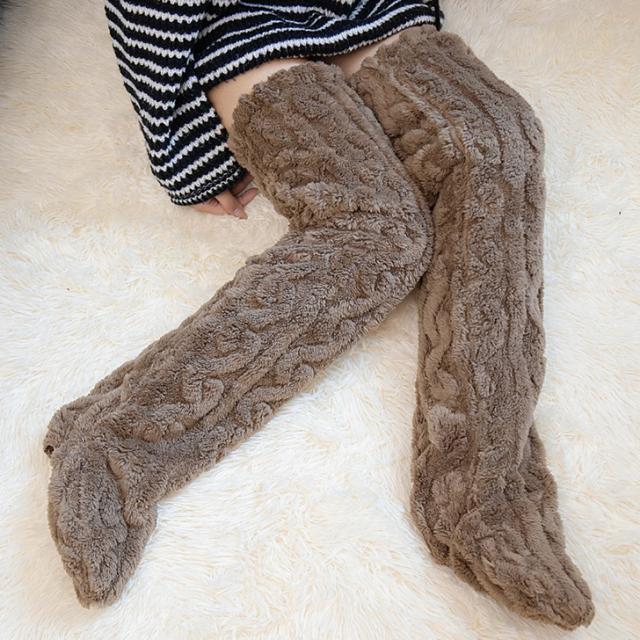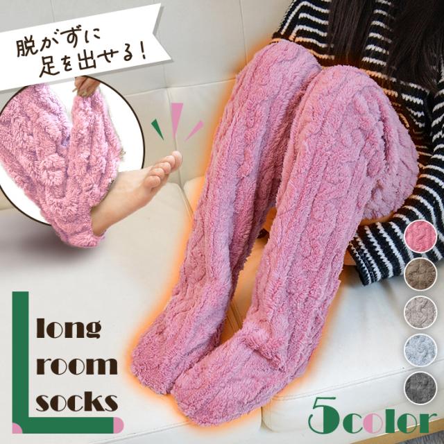 新作 つま先が出せる◎ もこもこ ボア ケーブル ロング ルームソックス 靴下 ソックス レディース ニーハイ レッグウォーマー厚手 冬 防寒 あったか 暖かい 冷え性 冷え取り ルームウエア 部屋着 パジャマ 就寝