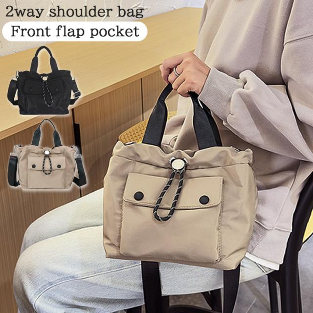新作 フロントフラップポケット 2way 撥水 ナイロン 巾着 ショルダーバッグ レディース 巾着バッグ ハンドバッグ トートバッグ 斜めがけ 収納 マチ広 大人 おしゃれ かわいい カジュアル 軽量 小さめ ミニ
