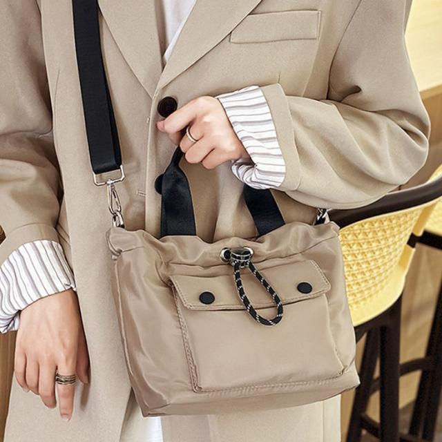 ●フロントポケットが特徴的なナイロン巾着ショルダー