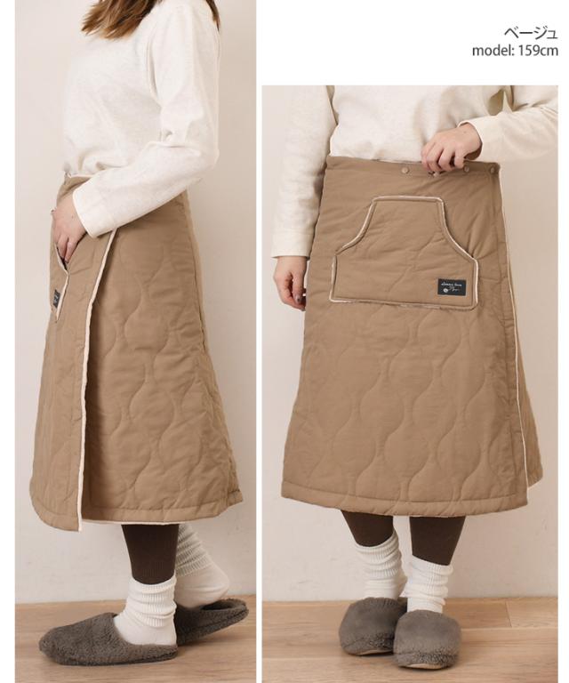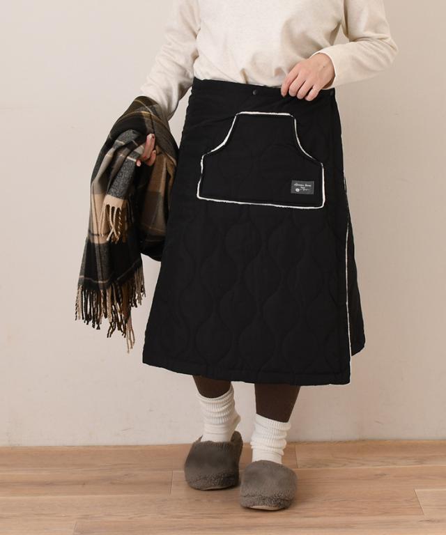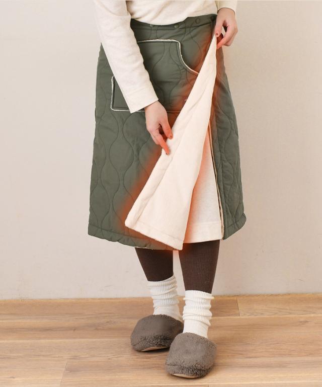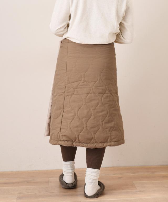 ●撥水加工、裏ボア付きのキルティング巻きスカート