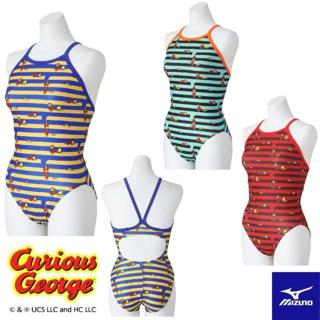 ミズノ MIZUNO 競泳水着 練習用水着 レディース エクサースーツ ミディアムカット EXER SUITS U-Fit おさるのジョージ 競泳練習水着 2024年秋冬追加企画モデル N2MAB799