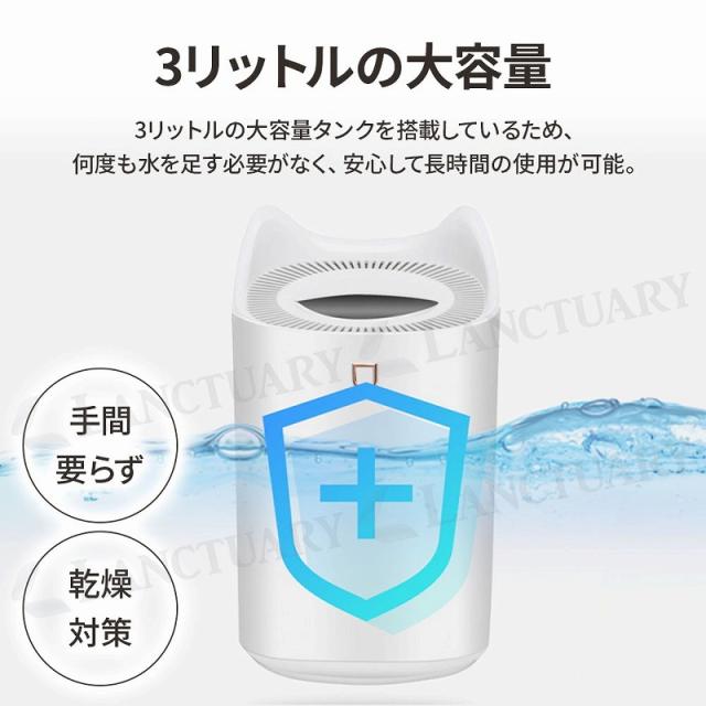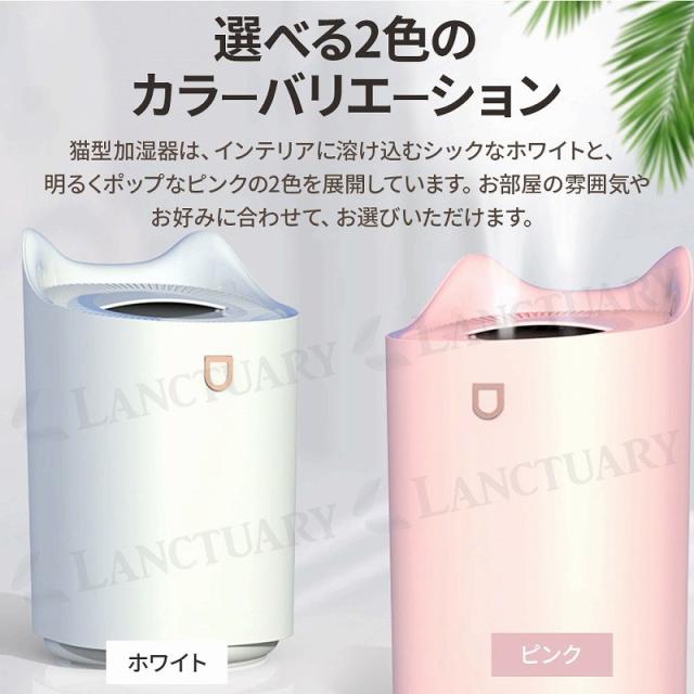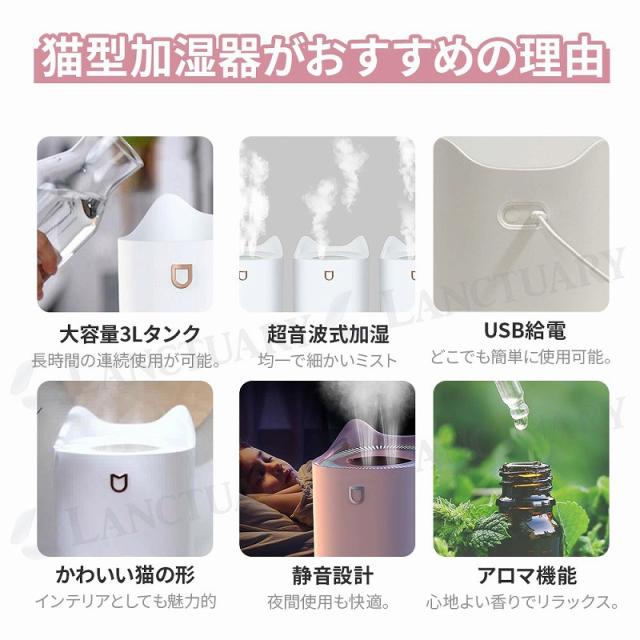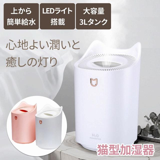 猫型加湿器 ホワイト ピンク 3L容量 USB給電 静音 超音波 夜間照明 アロマ機能 省エネ 大容量 卓上 オフィス 家庭 子供部屋 安全 乾燥対策 ウイルス花粉 ペット agesugi_ska
