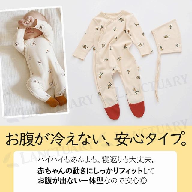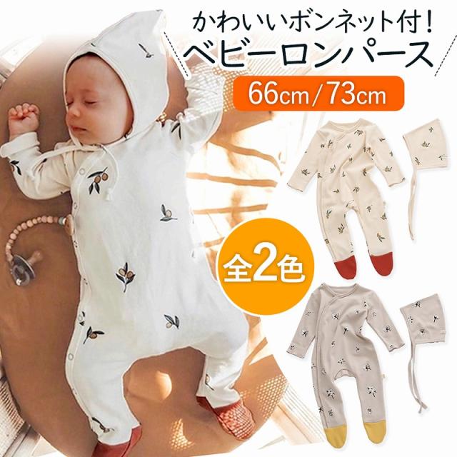送料無料 ロンパース 60 70 長袖 新生児 ベビー 帽子 出産祝い