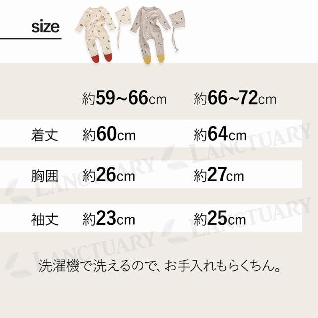 | 主な仕様 | 【カラー】 オリーブ、コットン 【サイズ】 約59~66cm、約66〜73cm 【素材】 コットン、ポリエステル 【仕様】 ロンパース&ボンネット |