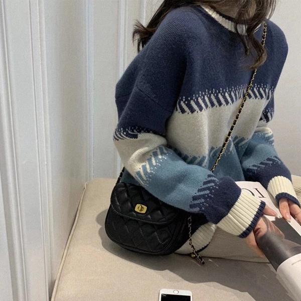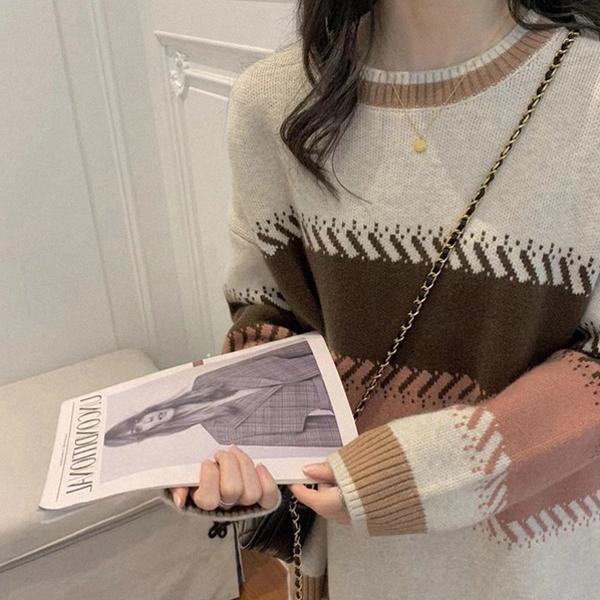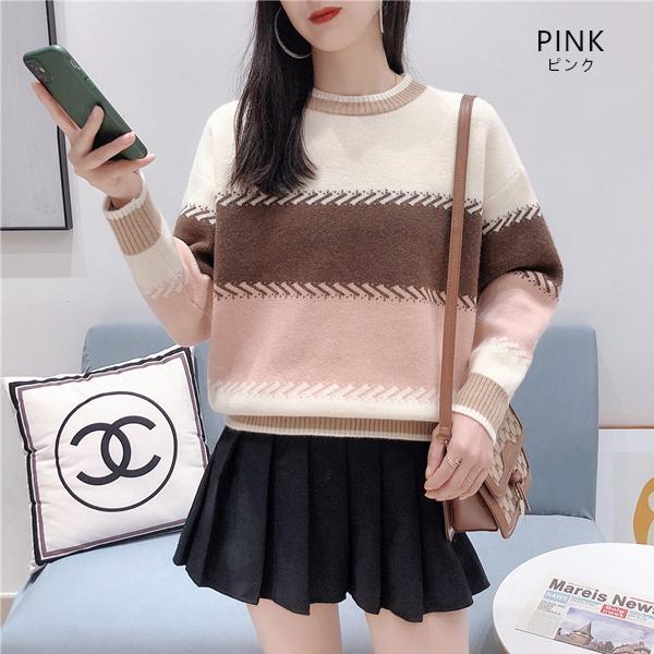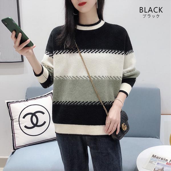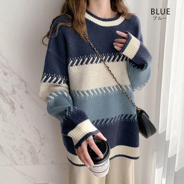 ニット レディース トップス 秋 冬 ボーダー 切り替え マルチボーダー 配色 セーター ボーダーニット ボーダートップス おしゃれ かわいい クルーネック 長袖