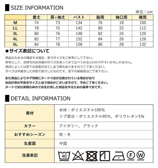 4L:着丈82 肩+袖丈77 バスト152 脇周84 袖口周26 裾周126