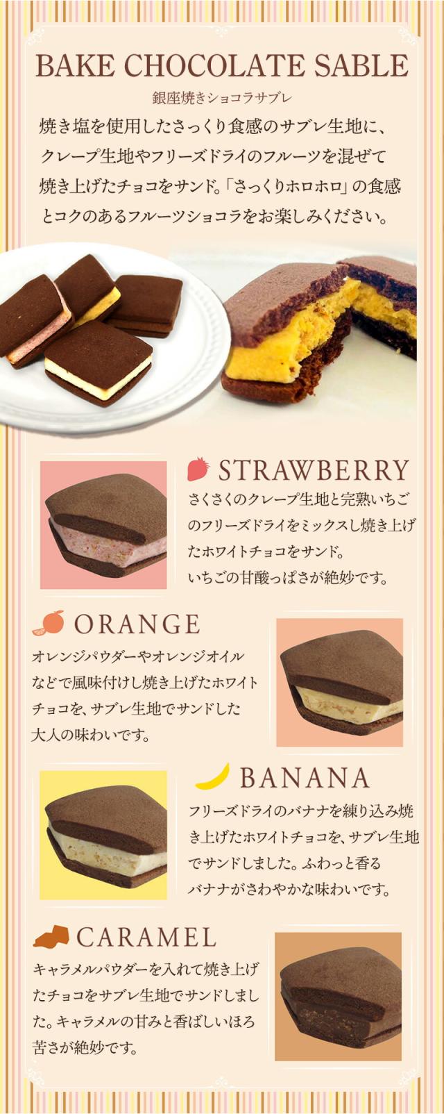 銀座焼きショコラサブレ(オレンジ、ストロベリー、バナナ、キャラメル各1個)