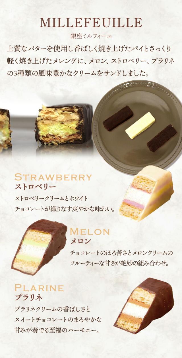 銀座ミルフィーユ(メロン、ストロベリー各2個、プラリネ1個)