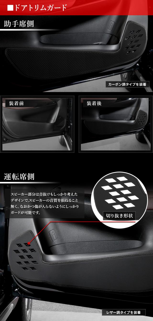 | 乗降時に足が当たって傷ついたり、お子様が靴で蹴って傷がついたりしてしまう車内の内張り・足元をしっかり保護してくれるキックガードシリーズ! グローブボックスガード・ドアトリムガード・インテリアパネルガードの3点がお得なセット価格になりました♪ 新車時のようなきれいな状態を保ちたい!こんな方におすすめです。 ■専用設計だからぴったりフィット! 専用設計のカバーだから傷つきやすい部分をしっかりカバー! マジックテープで貼るだけの簡単取付で効果絶大。 ■表面の生地は2つのタイプから選べます 表面は、カーボン調・レザー調の2つのタイプからどちらかを選べます。 高級レザーを使用しているため、しっとりとした柔らかな手触り。 また、表面は防水仕様で水で汚れても染み込みません! 汚れた場合は固く絞った濡れタオルなどでサッと拭くだけでOK! ■裏面は高級フェルト仕様 裏面はフェルト仕様でめったなことでは車体に傷が入ることはありません。 表地と裏地の間に高密度ウレタンをラミネートしています。 ■信頼の日本製 本製品は日本国内生産の安心品質。 国内の提携工場にて熟練の職人が手作業で製作しています。 安価な商品にはない仕上がりをお届けいたします。 ハイクオリティな日本製品をぜひご体感ください! |
