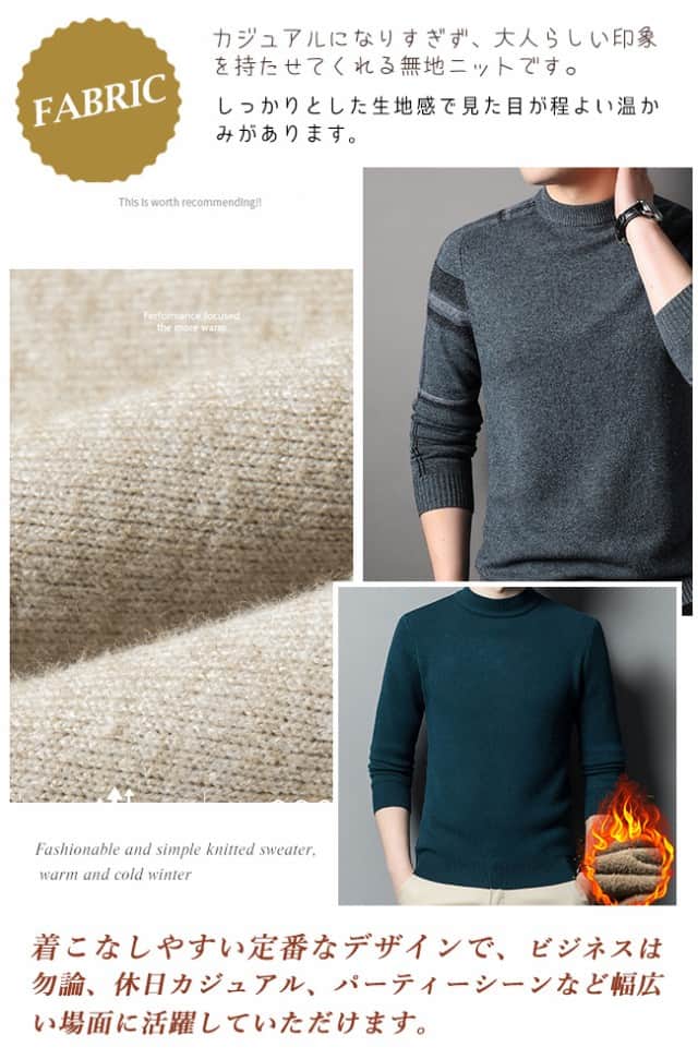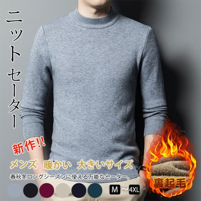 秋新作 ニットセーター 裏起毛 メンズ 冬服 タートルネック ビジネス オフィス カジュアル おしゃれ 大きいサイズ 無地 丸首 厚手