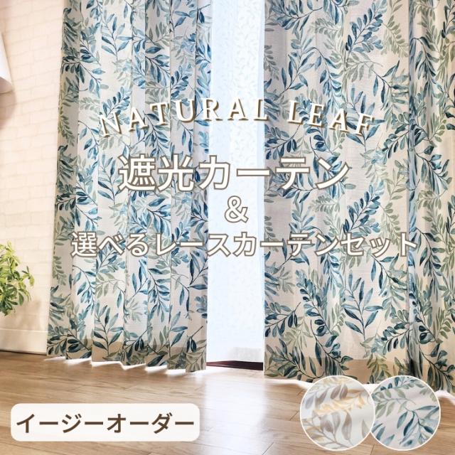 カーテン 遮光 EO- 風通 ナチュラルリーフ 遮光カーテン&選べるレースカーテン セット 幅100cm 4枚 幅200cm 2枚 丈145〜160cm