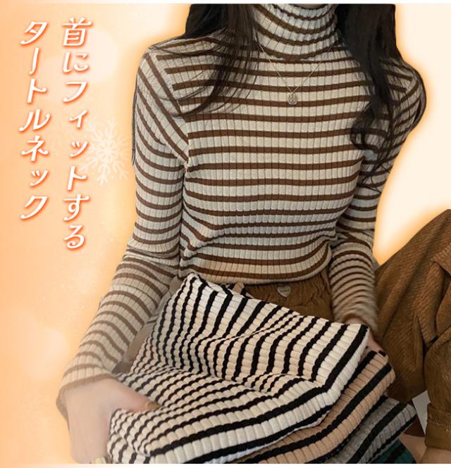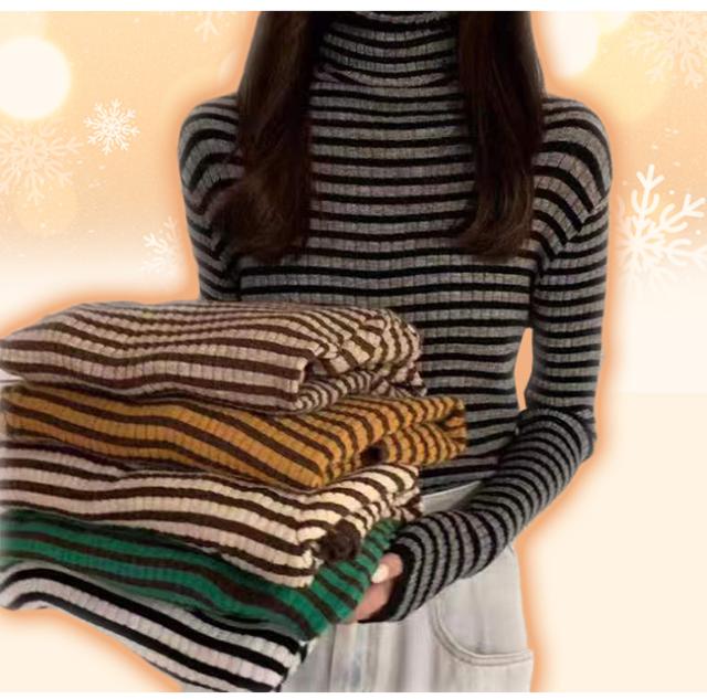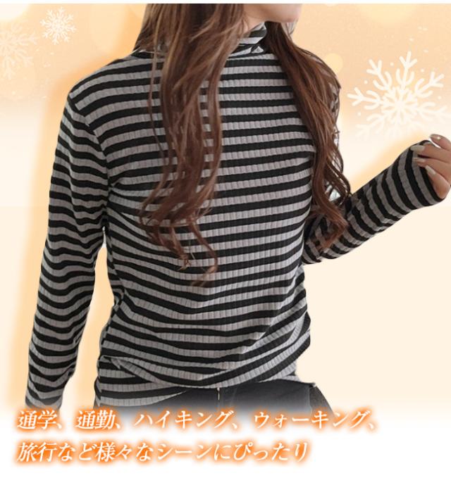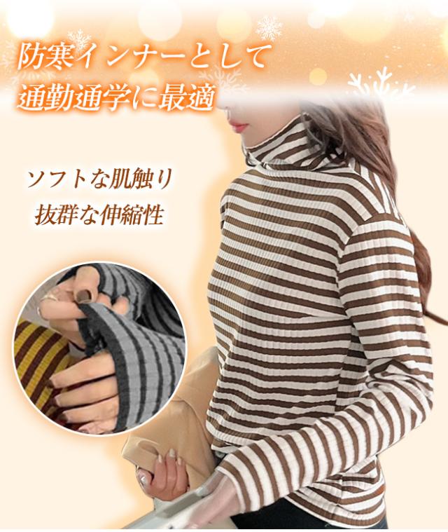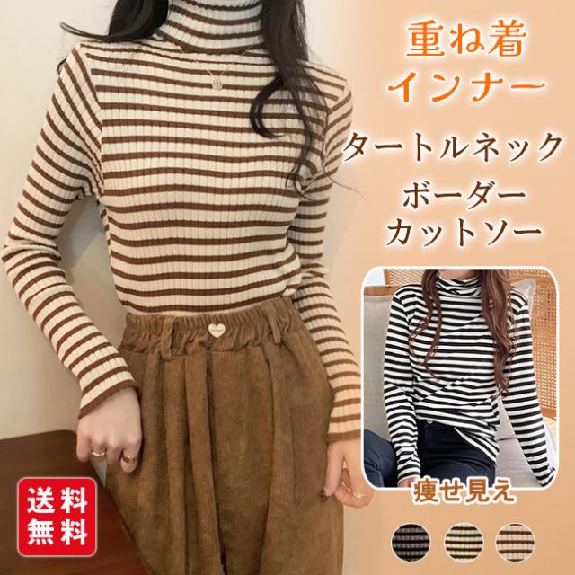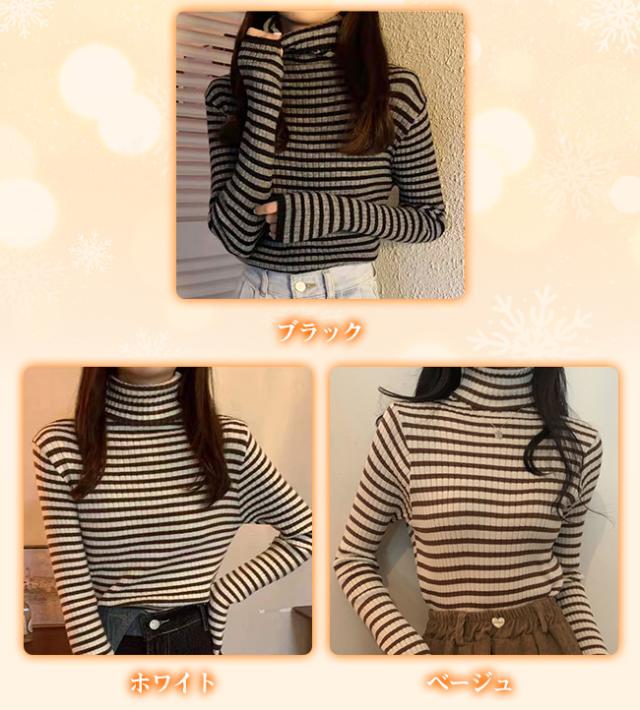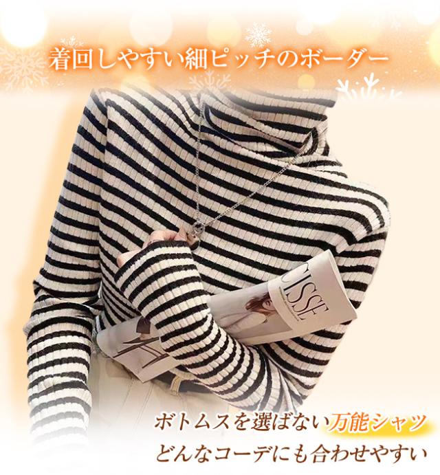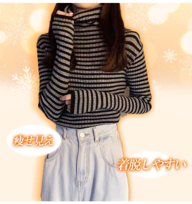 新作 タートルネックカットソー 重ね着 インナー ボーダー ハイネック ニット トップス レディース ゆったり 長袖 おしゃれ 柔らかい OL 通勤 オフィス 着痩せTシャツ 体型カバー ストレッチ 肌着 保温