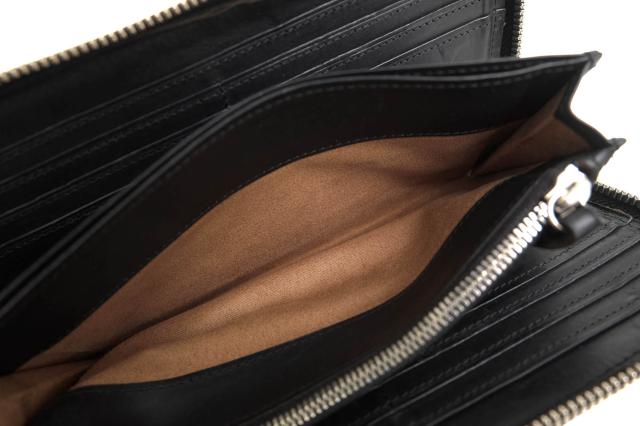 素材には、馬勒を作るために作られた強靭なブライドルレザーを使用、シンプルかつ高級感のある逸品。ラウンドジップになっているので間口が大きく開くので視認性が高く、出し入れも楽に行えます。また、片側にはマチが付いているなど、シンプルな中にもさりげないアクセントを持たせ、エレガントな大人な男性を演出してくれるアイテムです。
