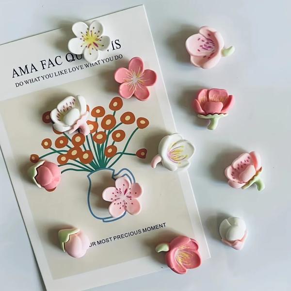 樹脂製装飾マグネット 冷蔵庫用マグネットスティック 庭の花 小さな新鮮な 12個