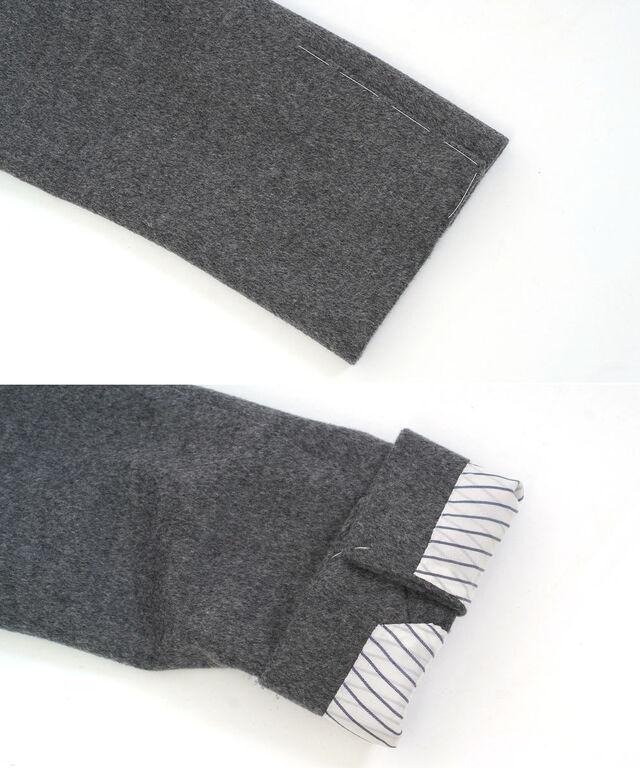 袖にはストライプ柄の裏地が付いており、腕を通しやすくなっています。