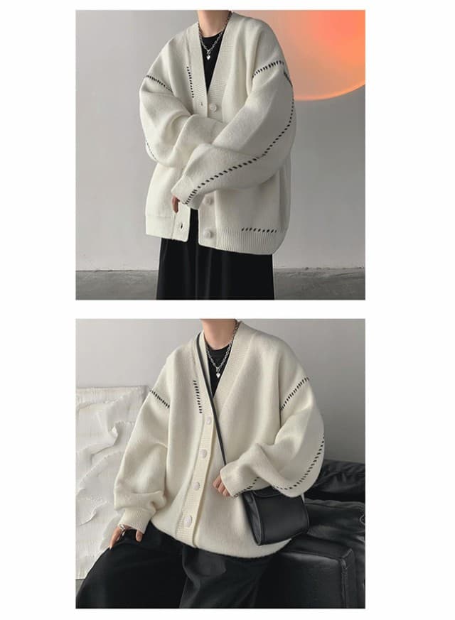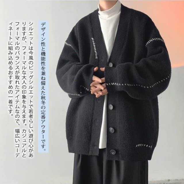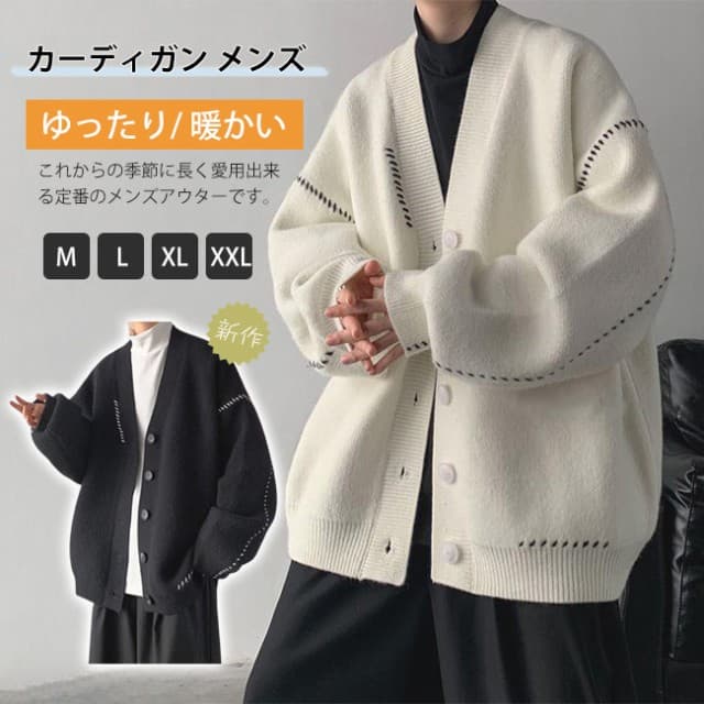 ニットカーディガン メンズ 秋服 アウター ニットセーター vネック 長袖 秋冬服 ボタン 無地 ゆったり 暖かい シンプル 軽量