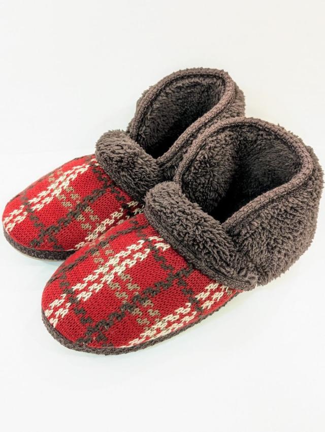 カロー ニットブーツ M レッド 約23.5cm~24.5cm ルームブーツ ルームシューズ あったかグッズ ボア 防寒