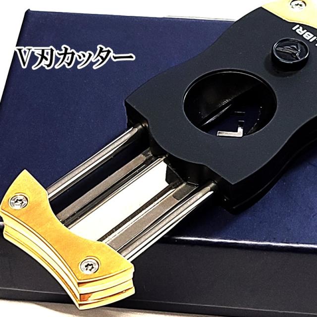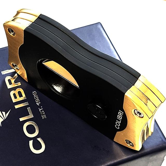 シガーカッター Vカット コリブリ 葉巻用 ブラック×ゴールド 葉巻カッター V刃カッター 喫煙具 Colibri バネ式 黒金