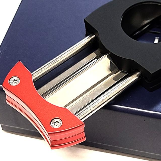 中央のレバーを引くと刃が開くオートマチック式のシガーカッターです。直径20ミリまでの葉巻に対応しています。