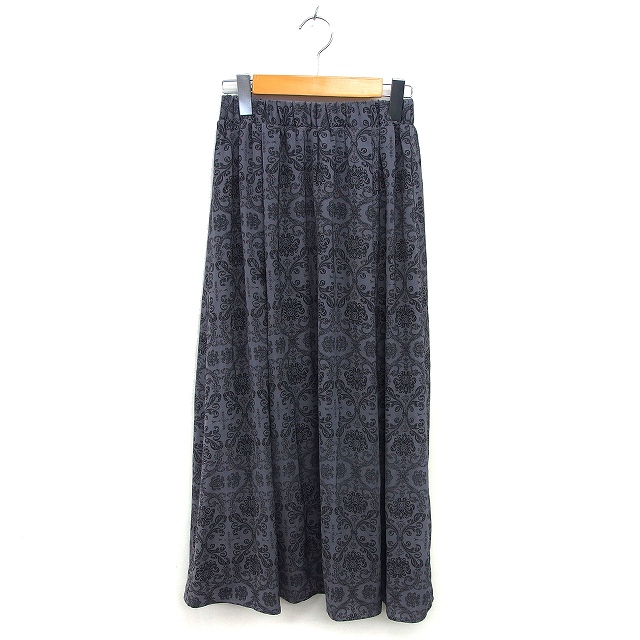 【中古】コーエン coen スカート フレア マキシ丈 ロング ダマスク柄 ゆったり ギャザー M チャコールグレー /NT10