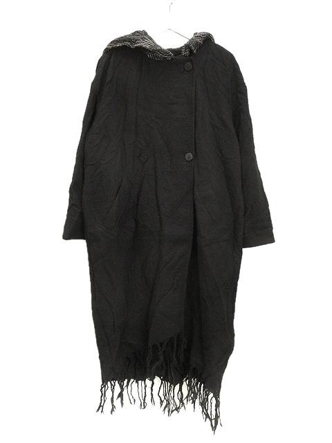 【中古】センソユニコ フウアンダーバー FU UNDERBAR 風_ フリンジ コート ウール 変形襟 38 ブラック 黒 アウター