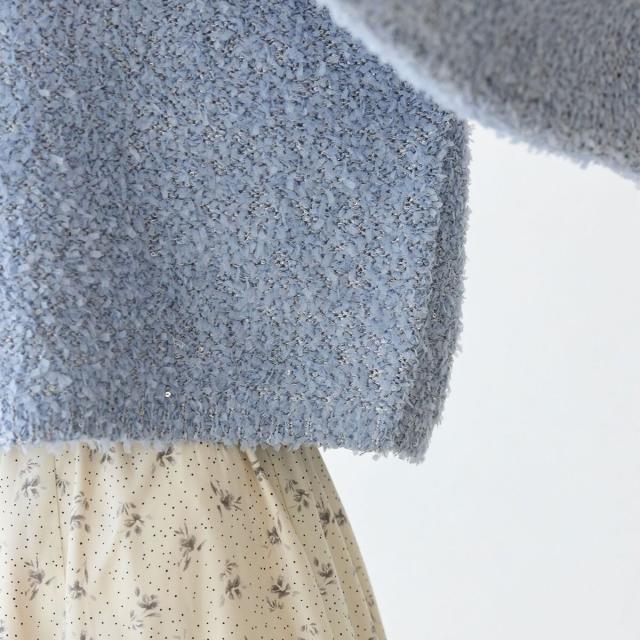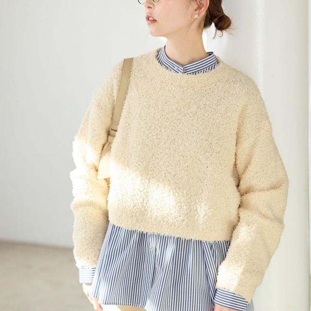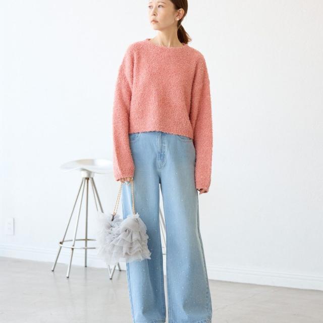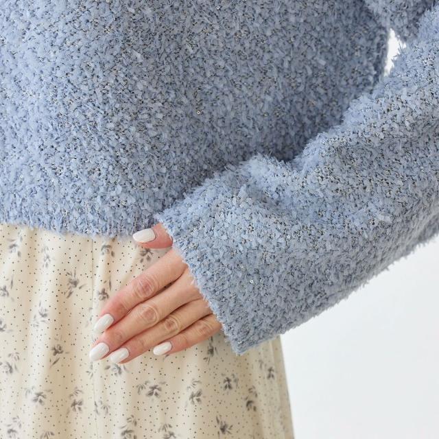 スパンコール混リボンヤーンニットプルオーバー