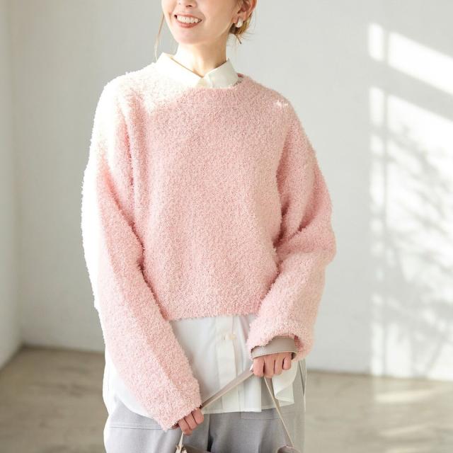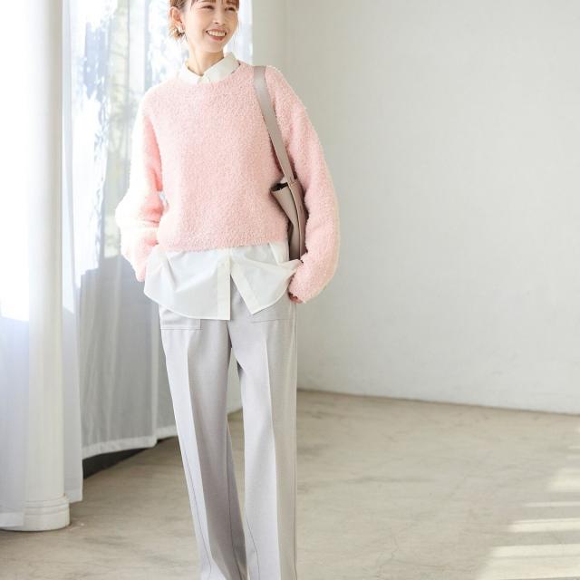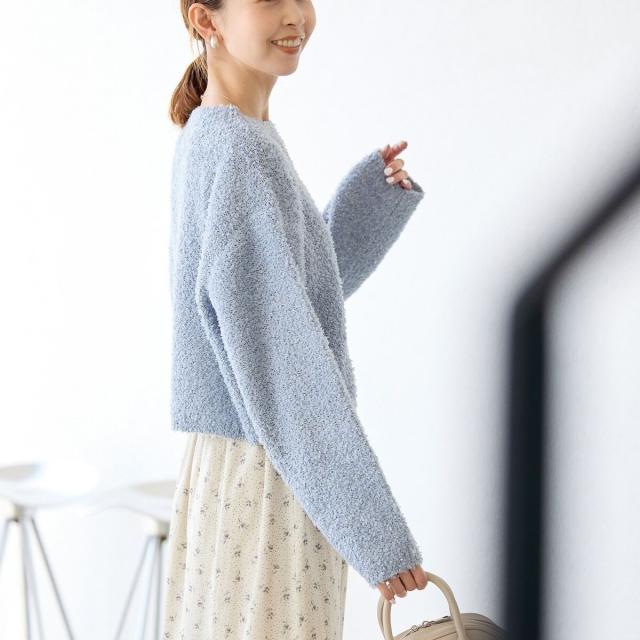・素材感を活かした、シンプルな長袖のクルーネックニット。