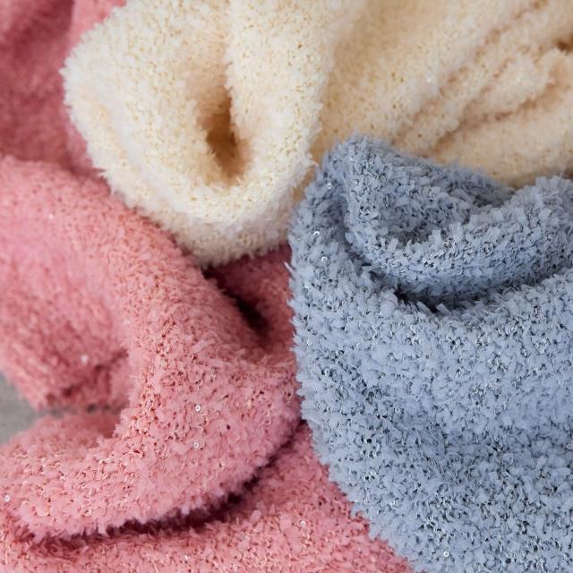 ・スパンコールとリボンヤーンを使った表情のある素材。