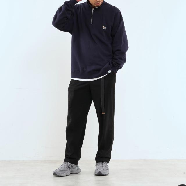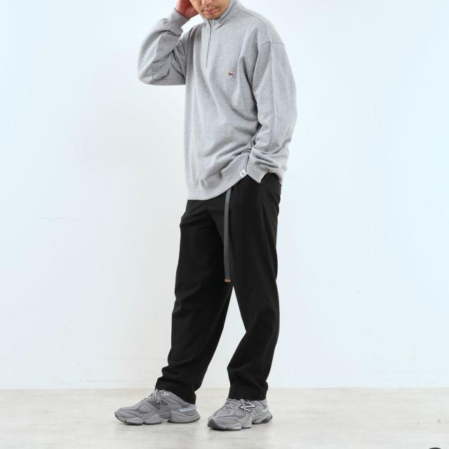 小ぶりなスタンドカラーを採用したハーフZIPデザインです。