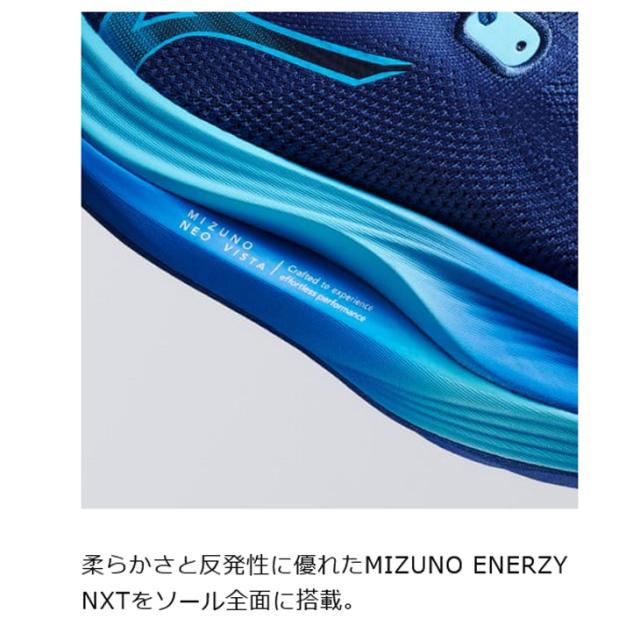 ミッドソールフォームは新開発のMIZUNO ENERZY NXTを搭載。従来のMIZUNO ENERZYフォームより柔らかさ、