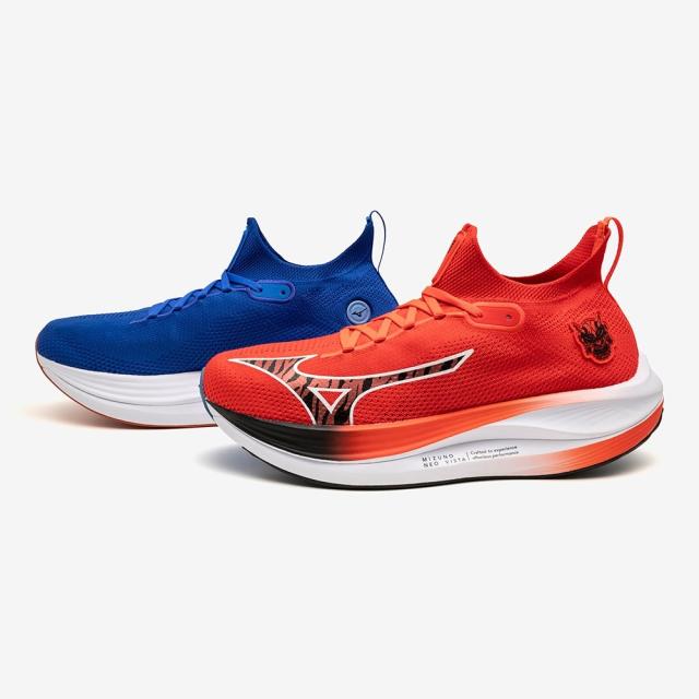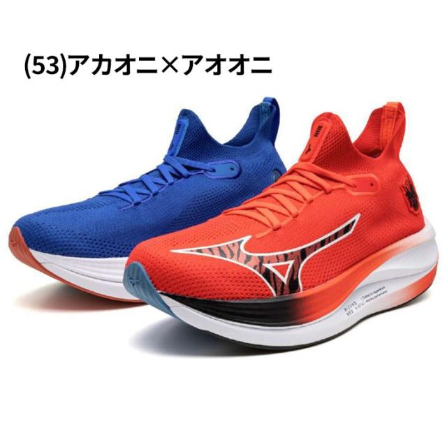 ミズノ メンズ ランニングシューズ 2E相当 mizuno ミズノネオビスタ 限定モデル ONIHAYAIパック 左右別色 赤 青 ローカット 陸上 トレーニングシューズ 厚底モデル ニット ブーティ構造 男性 ランシュー スピード練習 ブランド MIZUNO NEO VISTA クツ/J1GC2447