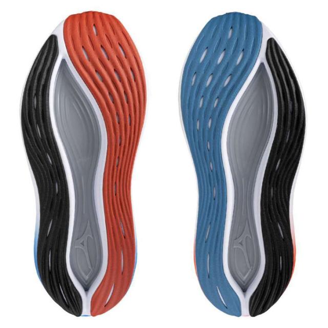 ソールの波形構造により、クッション性と安定性を両立させるミズノの基幹機能