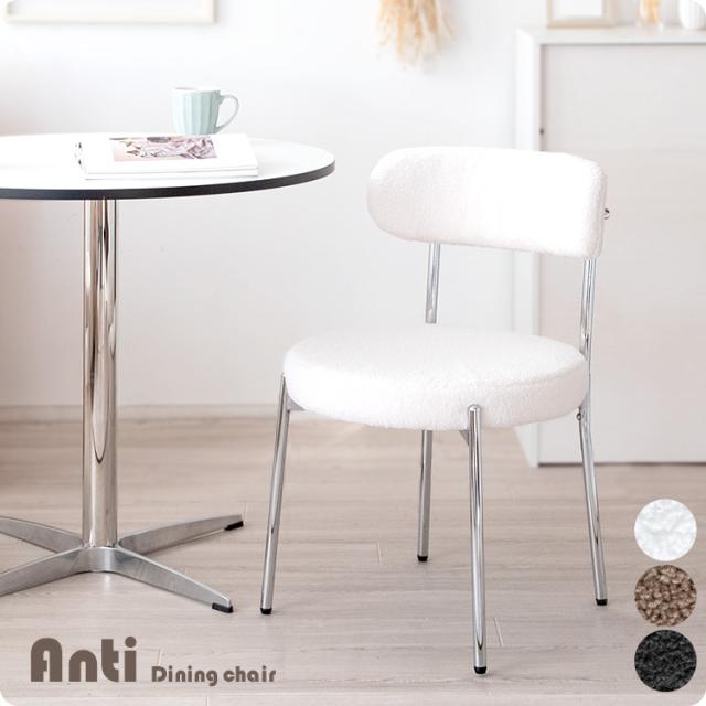 ふわもこなブークレ生地とシルバーフレームの丸くて可愛いダイニングチェア『Anti(アンティー)』。