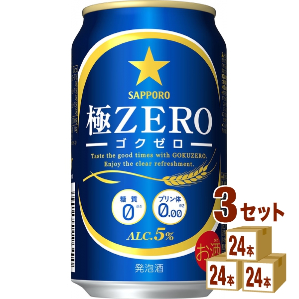 サッポロ 極ZERO(ゴクゼロ) 350ml×24本×3ケース (72本) 発泡酒