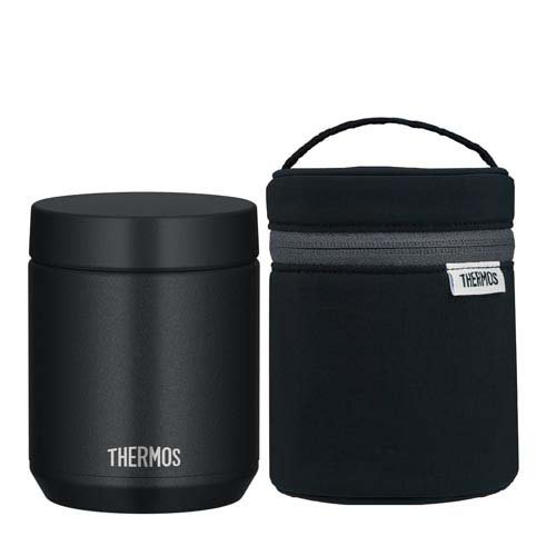 | ★サーモス 食洗機対応 真空断熱スープジャー 0.4L ブラック JED-400 BK×1個 ★サーモス スープジャーポーチ ブラック RES-003 BK×1個 |