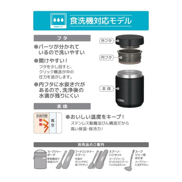 ★サーモス 食洗機対応 真空断熱スープジャー 0.4L ブラック JED-400 BK