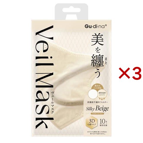 Gu・di・na ヴェールマスク シルキーベージュ(10枚入×3セット)[不織布マスク]