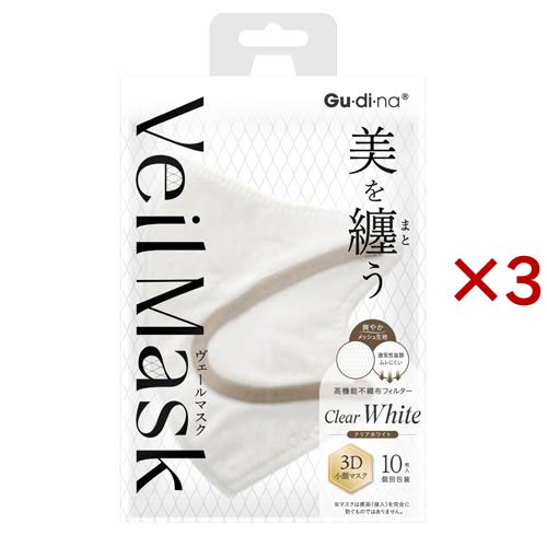 Gu・di・na ヴェールマスク クリアホワイト(10枚入×3セット)[不織布マスク]