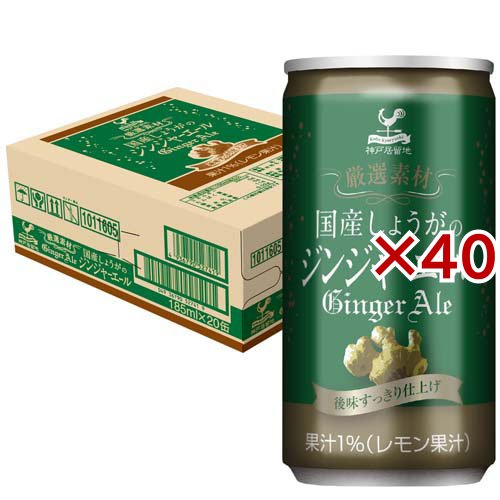 神戸居留地 厳選素材 国産生姜のジンジャーエール 缶 炭酸飲料(20本入×2セット(1本185ml))[炭酸飲料]